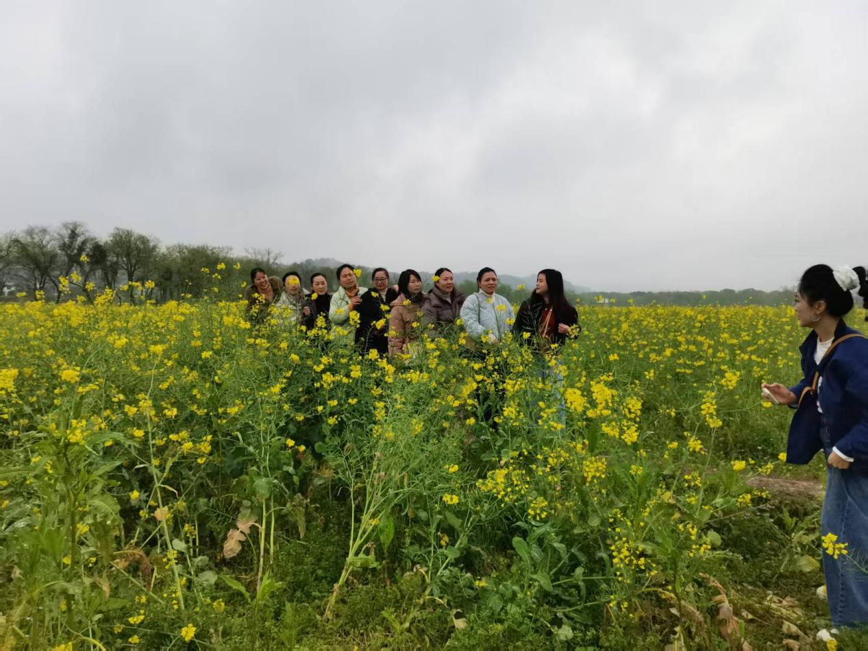 活動首站,職工們走進窯市金燦燦的油菜花田。細雨初歇,田野間薄霧輕籠,金黃的花浪與翠綠的枝葉交相輝映,構成一幅生機盎然的春日畫卷。大家三五成群,或駐足賞景,或拍照打卡,用鏡頭記錄下“人面菜花相映紅”的動人瞬間。歡聲笑語中,平日工作的疲憊一掃而空,職工們紛紛感慨:“雖錯過了節(jié)日,卻收獲了更美的春光!”